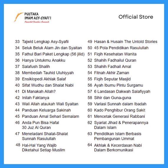 37 (lite) sampai 64 (lux) Judul Buku Islami Pilihan